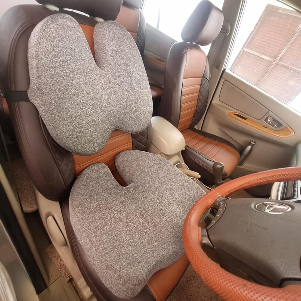 "Great for lengthy drives. I spend hours behind the wheel each day, and this cushion combination offers considerable assistance, even boosting height by 2 to 3 inches. Valuable item!"